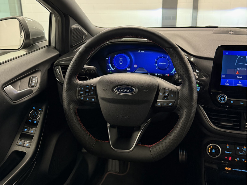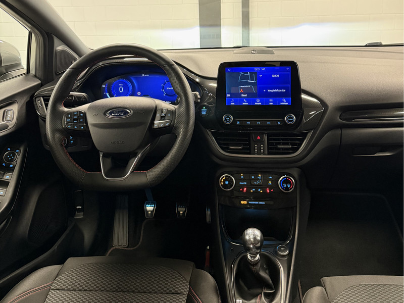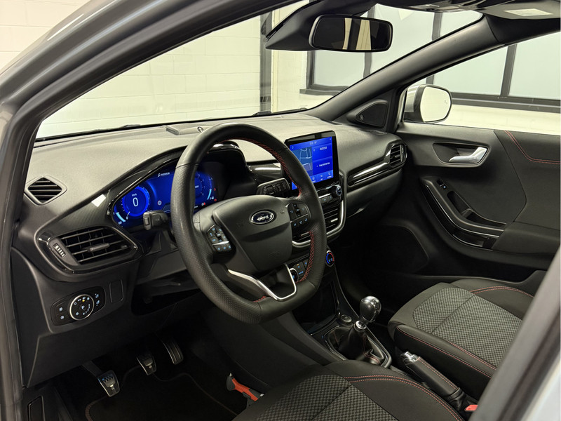 Het door ons haast verplichte ST-Line interieur pakket bevat onder andere sportstoelen afgewerkt met rood contraststiksel en een afgevlakt sportstuurwiel. Door het gehele interieur zijn de rode contraststiksels terug te vinden wat deze auto echt sportief maakt. De edelmetaal pedalen geven deze auto een echt luxe gevoel.